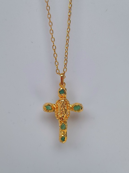 Dije Inicial Esmeralda – Cobre con oro laminado y esmeraldas naturales en brutoDije Inicial Esmeralda – Cobre con oro laminado y esmeraldas naturales en bruto