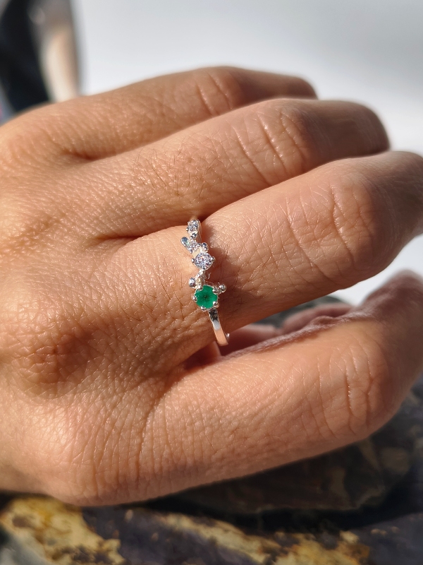 Anillo Constelación Esmeralda – Plata 925 con esmeralda natural facetada