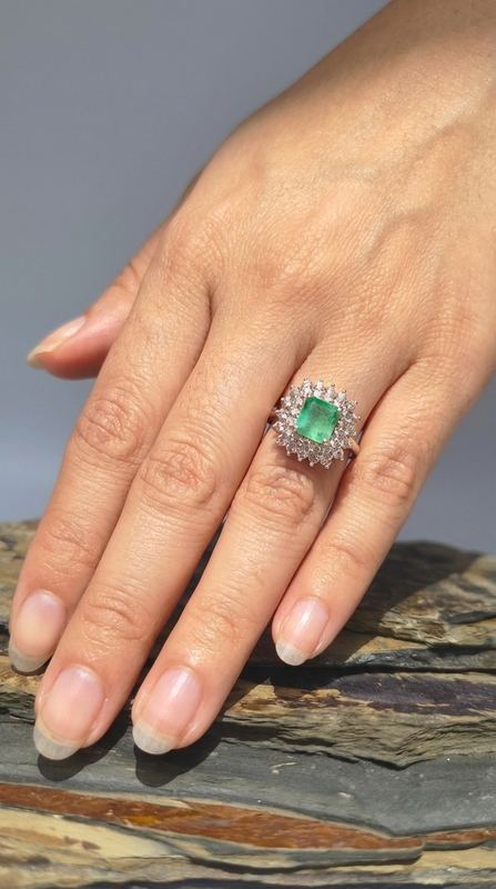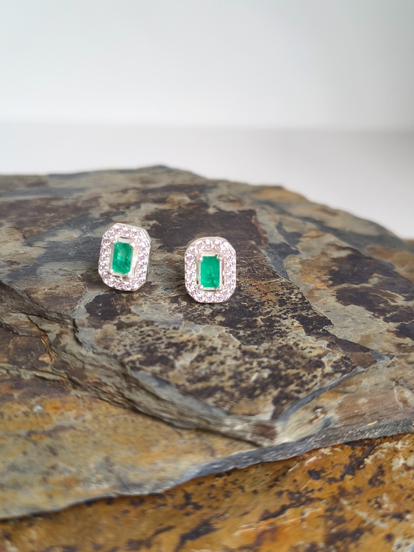 - Piedra central: Esmeralda natural, corte esmeralda / rectangular escalonado