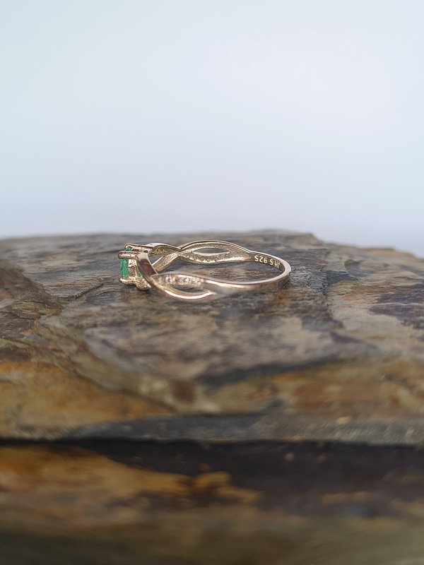 Anillo Trenza Esmeralda – Plata 925 con esmeralda natural facetada