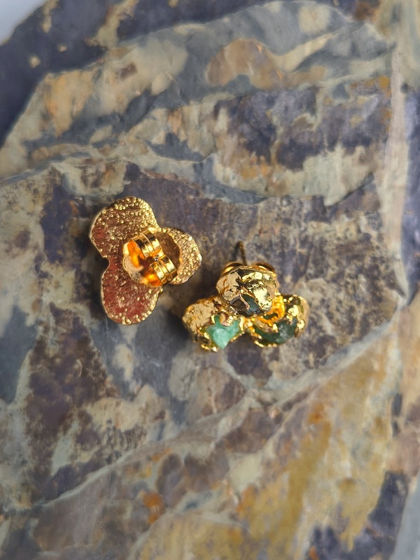 Aretes Trío Esmeralda Bruta – Cobre con oro laminado y esmeraldas naturales