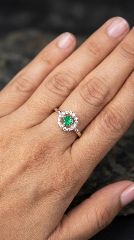 - Piedra central: Esmeralda natural, corte facetado redondo